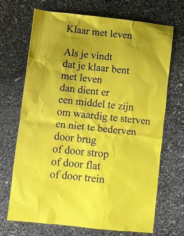 Last week a second person among those accused died, this time via ‘zelf-doding’ or rational suicide.