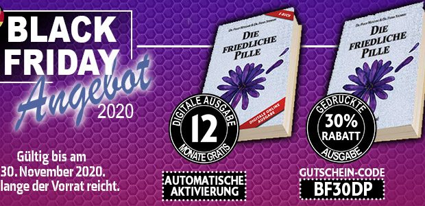Handbuch Die friedliche Pille – Digitale Ausgabe 36 Monate zum Preis von 24 Handbuch Die friedliche Pille – Druckausgabe 30% Rabatt mit Gutschein-Code: BF30DP