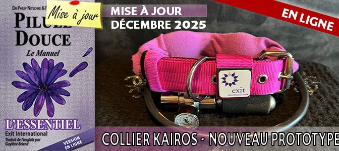 J’ai 67 ans ; je suis en bonne santé physique et mentale et je fais tout pour le rester. Mais au cas ou j’aurais un problème de santé grave compromettant ma qualité de vie, je souhaite y mettre un terme dignement et éviter la déchéance. Çà me rassurerait de connaitre les possibilités de commettre cet acte |