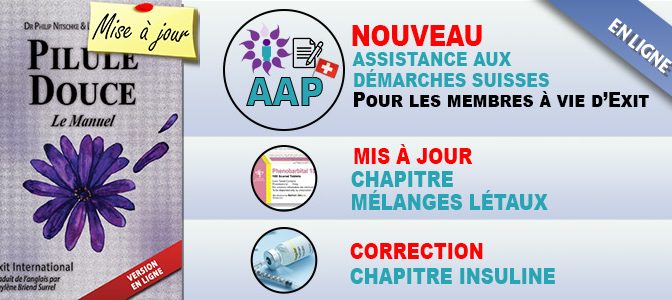 J’ai 67 ans ; je suis en bonne santé physique et mentale et je fais tout pour le rester. Mais au cas ou j’aurais un problème de santé grave compromettant ma qualité de vie, je souhaite y mettre un terme dignement et éviter la déchéance. Çà me rassurerait de connaitre les possibilités de commettre cet acte |
