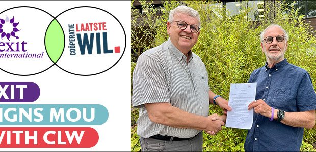 Exit heeft in augustus 2025 een samenwerkingsovereenstemming getekend met de Nederlandse zelfhulpgroep voor het recht op sterven, de Coöperatie Laatste Wil (CLW). Exit en CLW bewandelen al jaren parallelle wegen. Wij zijn beiden wereldwijd toonaangevende organisaties die geloven dat een goede dood een fundamenteel mensenrecht is voor iedereen, en geen medisch voorrecht voor ernstig zieken. […]